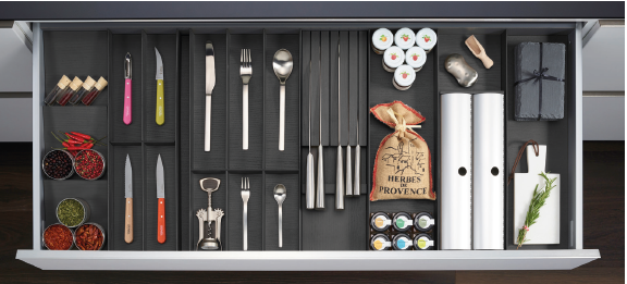 —КОМПЛЕКТ лоток + держатель для ножей, ФайнЛайн Линик 300 мм, глубина 500 мм, цвет ЯСЕНЬ черный Kessebohmer