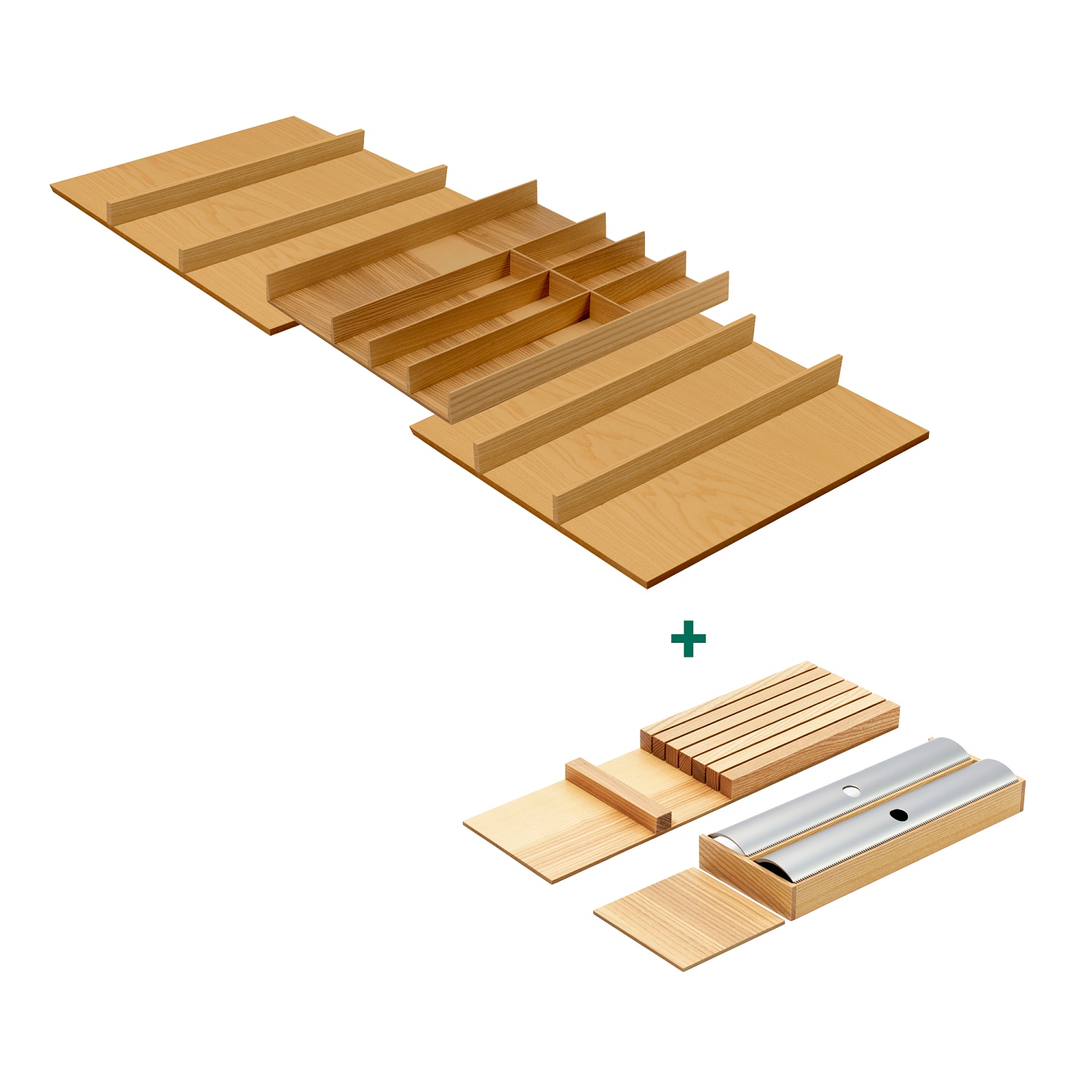 —КОМПЛЕКТ лоток + держатели для фольги и для ножей, ФайнЛайн Линик 1000-1200 мм, глубина 500 мм, цвет ДУБ натуральный Kessebohmer