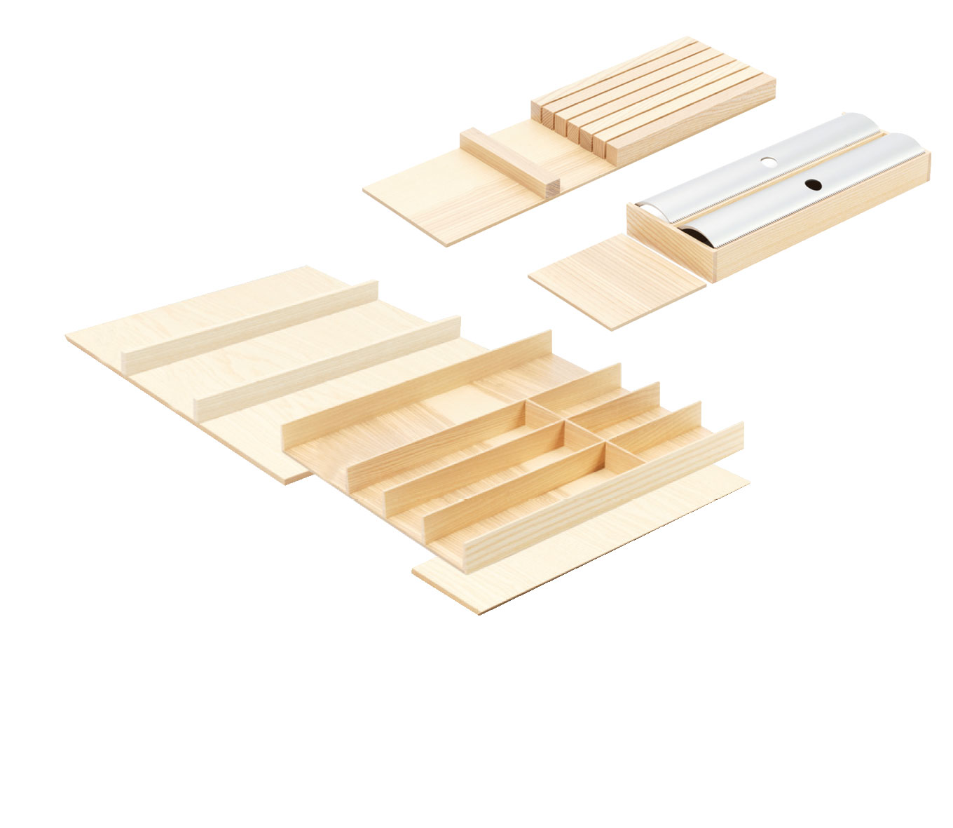 —КОМПЛЕКТ лоток + держатели для фольги и для ножей, ФайнЛайн Линик 800-900 мм, глубина 500 мм, цвет ЯСЕНЬ светлый Kessebohmer
