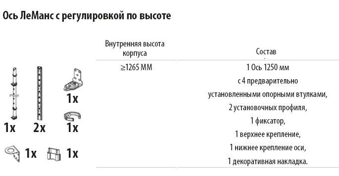 Комплект установочный, Леманс, H 1265, Ось + крепежный профиль для полок, цвет АНТРАЦИТ Kessebohmer | официальный магазин