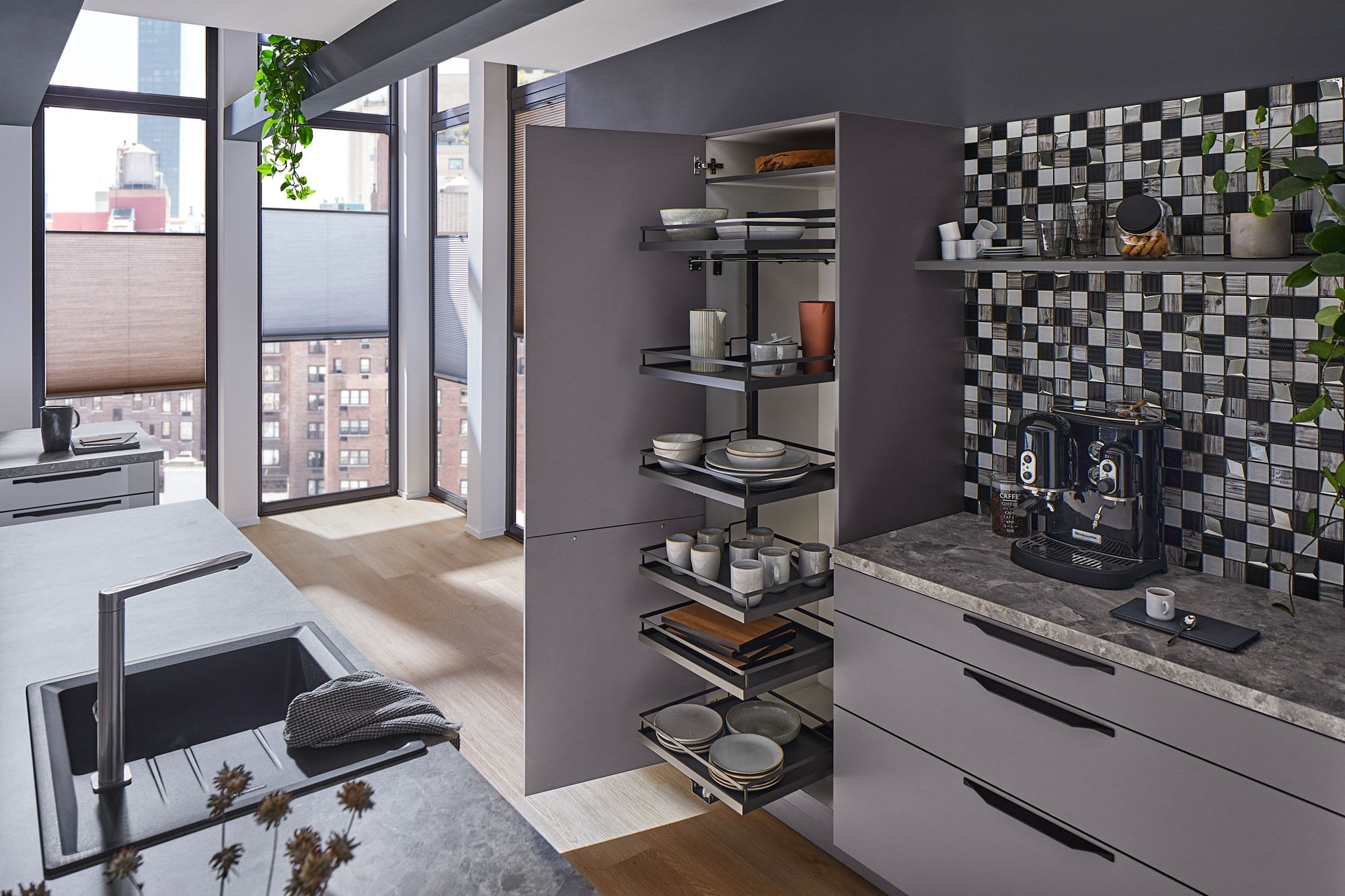 Прямые линии кухонного дизайна с полками Арена СТИЛЬ Kessebohmer в Улан-Удэ