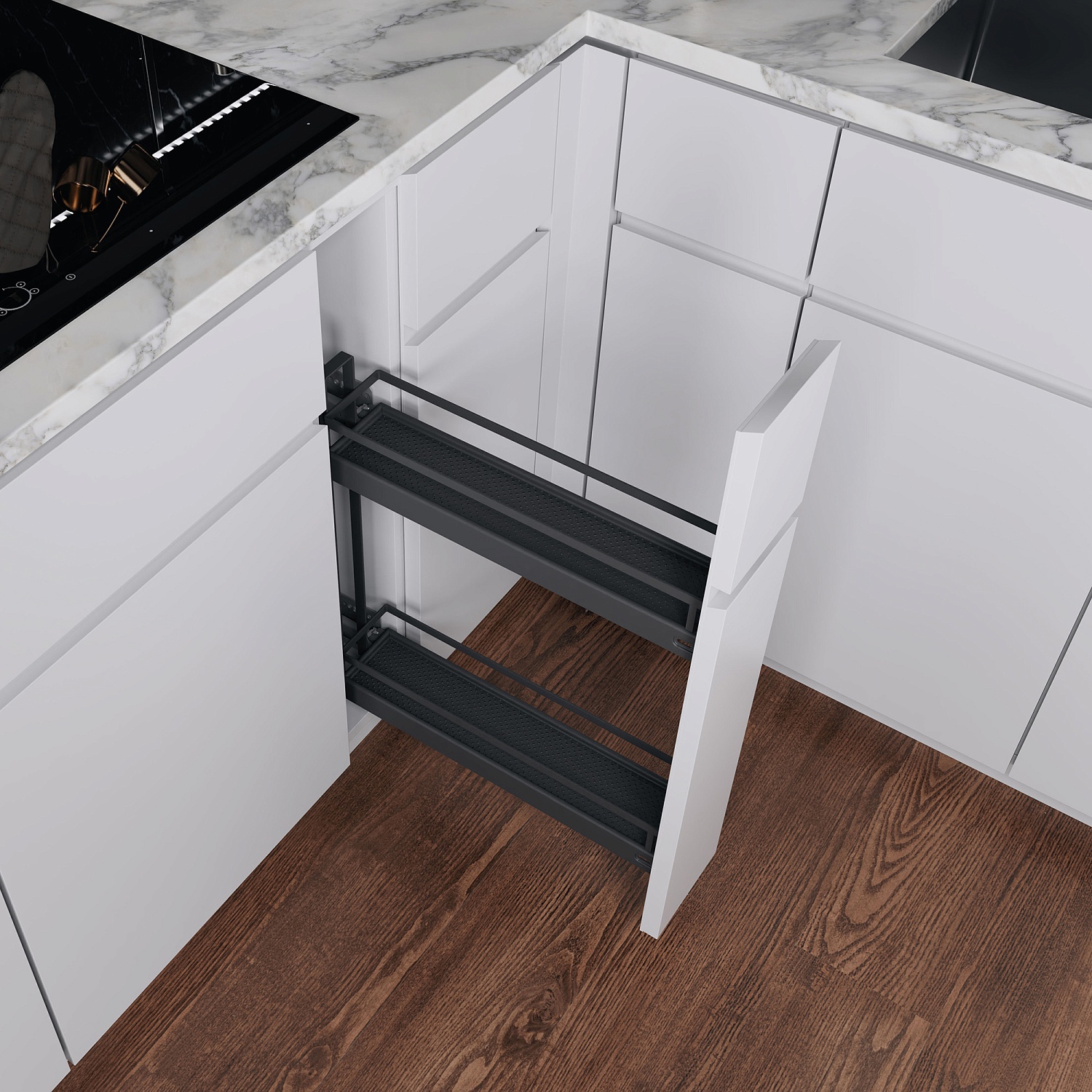 Бутылочница №15 с 2 полками H 542 фасад 150 мм 3D