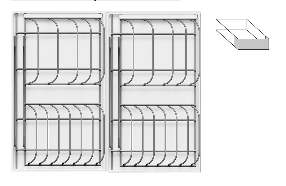 2 модуля для посуды большие (423 x 248 мм, каждый модуль состоит из 1 х держатель металлический, 1 х поддон пластиковый, 2 х защелка-ограничитель)