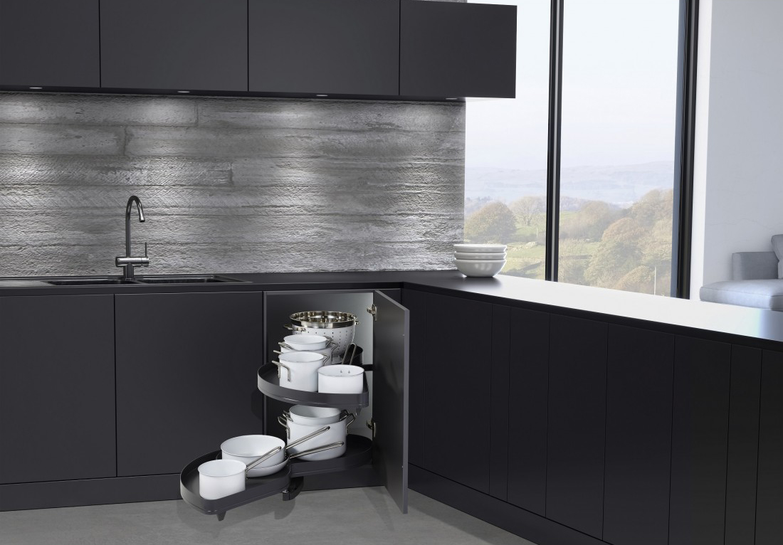 Комплект полок левый, Леманс 500 мм, Арена ПЬЮР, 2 полки + рычаги, цвет АНТРАЦИТ, цвет дна Антрацит, антислип (2603959846)