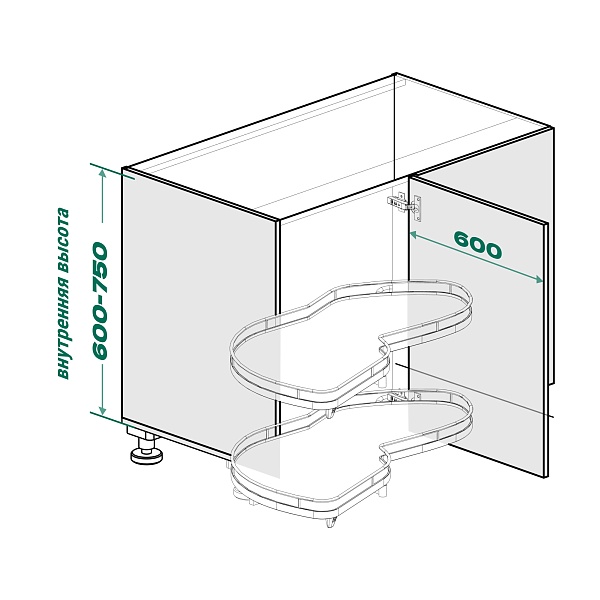 Комплект полок левый, Леманс 600 мм, Арена ПЬЮР, 2 полки + рычаги, цвет АНТРАЦИТ, цвет дна Антрацит, антислип (2603979846)