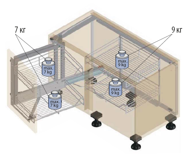Механизмы для угловых кухонных тумб