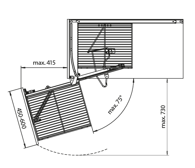 Комплект установочный правый, Волшебный угол 450-600 мм, H 525, Рама + амортизатор, цвет ТИТАН (2604010102)