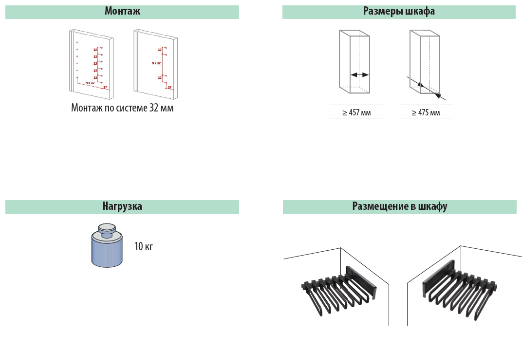 Инструкция по установке Комплект Держатель односторонний выдвижной Конеро: для брюк с 7 вешалками / с мешком для белья 2,2 мб