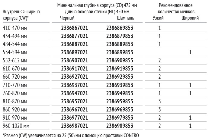 Комплект Conero: Мешок для белья 450 мм, Конеро W 434-494 мм, D 475 мм; мешок узкий 1 шт; цвет ЧЕРНЫЙ (5496877021)