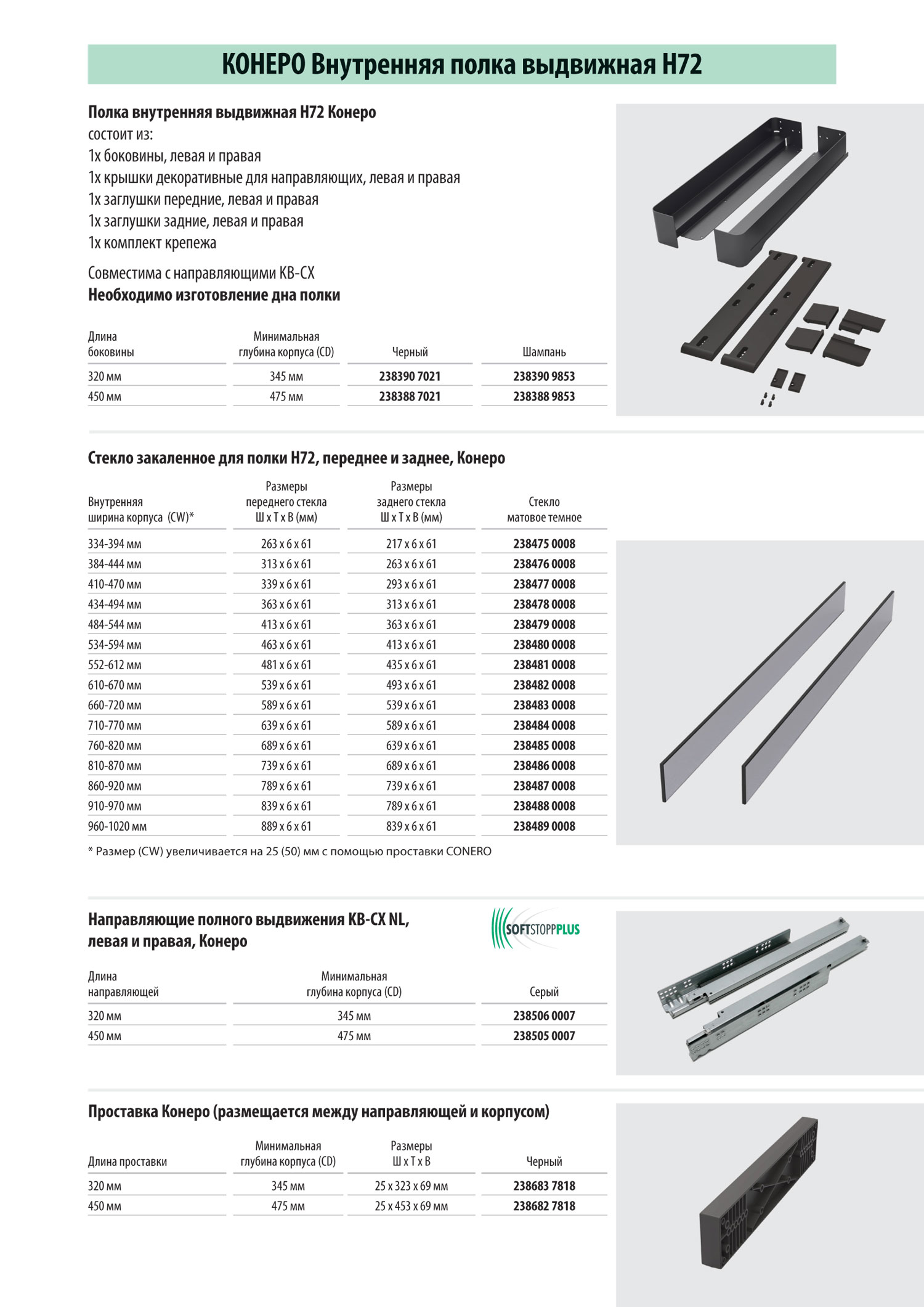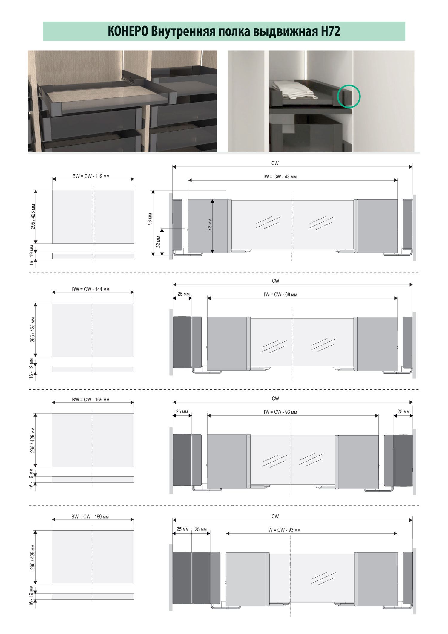 Инструкция по установке Комплект Полка внутренняя выдвижная 450 мм, H 72 Конеро 8,5 мб