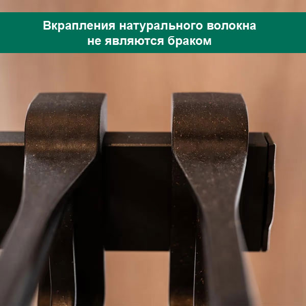 Характеристики вешалок для брюк из термопластика, армированного натуральным волокном, во многих отношениях превосходят обычный пластик. В состав материала входит 30% целлюлозы, полученной из луговых трав, это делает вешалки не только легкими, прочными и термостойкими, но и на 100% пригодными для вторичной переработки.