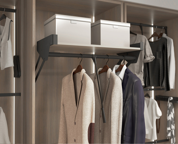 Пантограф с полкой в гардеробную Конеро состоит из: