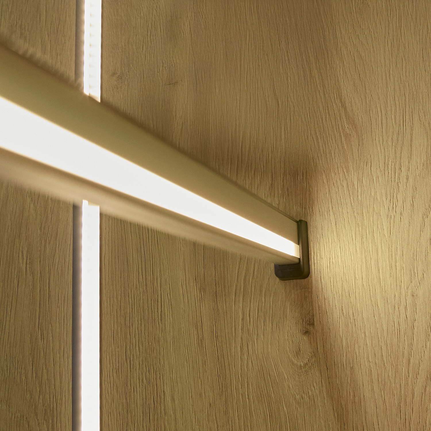 Штанга для одежды Конеро W 1220 мм с пазом для LED подсветки цвет ШАМПАНЬ Kessebohmer | официальный магазин