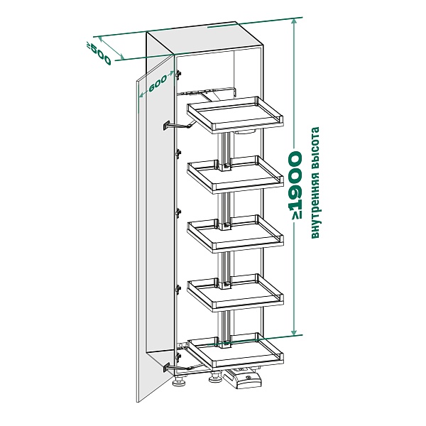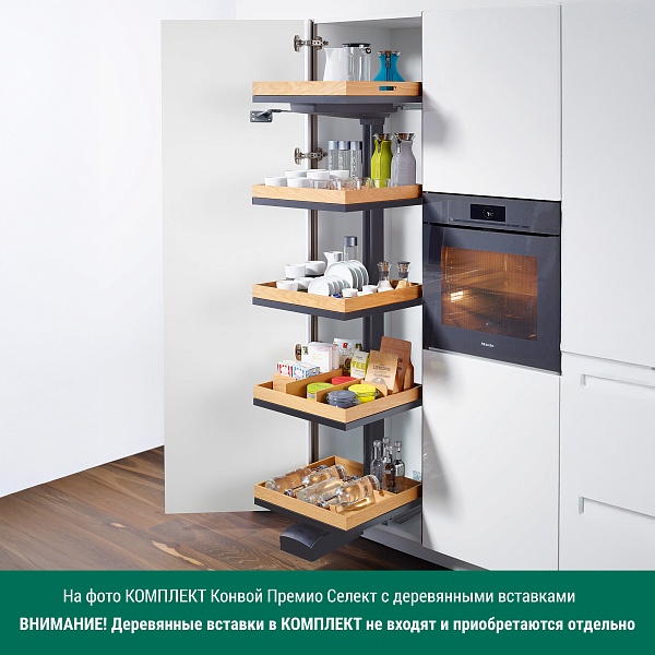 КОМПЛЕКТ левый Конвой Премио 600 мм, H 1900+, Арена СЕЛЕКТ, 5 полок, цвет АНТРАЦИТ Kessebohmer | официальный магазин