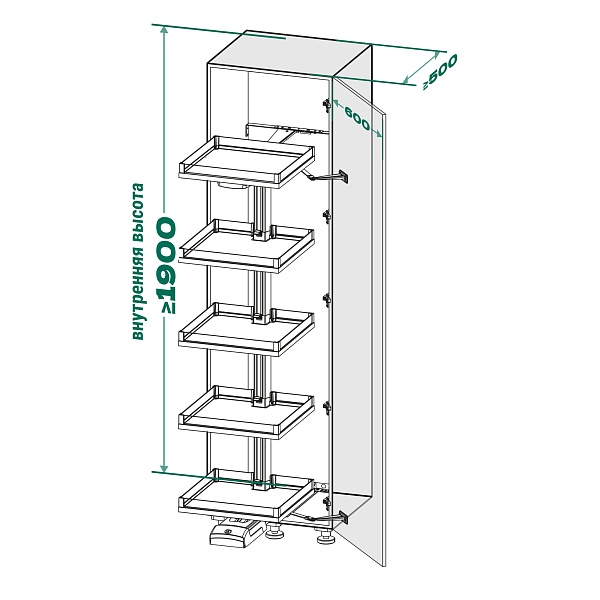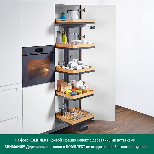 КОМПЛЕКТ правый Конвой Премио 600 мм, H 1900+, Арена СЕЛЕКТ, 5 полок, цвет АНТРАЦИТ Kessebohmer | официальный магазин