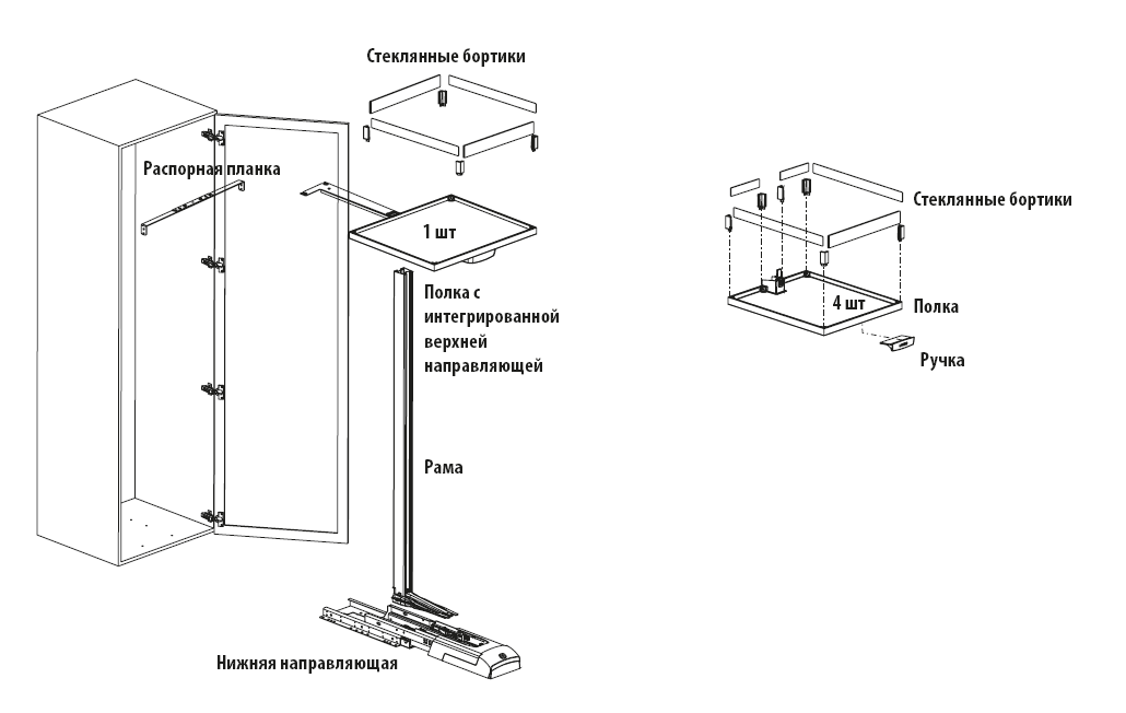 Полки со стеклянными боковинами, Конвой Лавидо, 600 мм, Комплект, 5 шт + 1 ручка., Арена, цвет АНТРАЦИТ, дно антрацит, антислип, 1 уп. (2805909846)