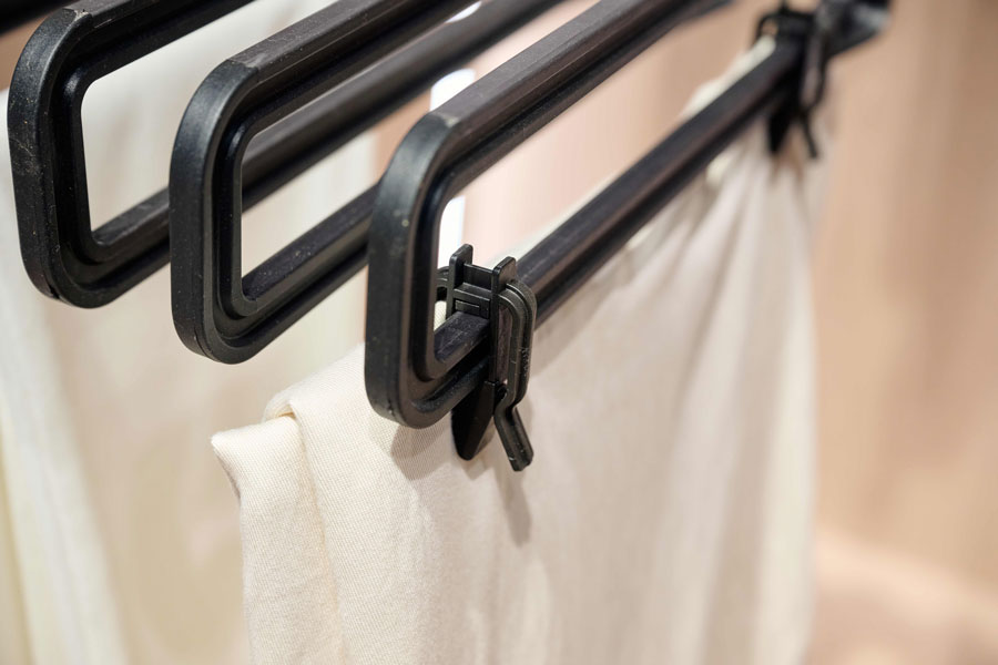 Зажимы для юбок. Хранение брюк на вешалках Conero было идеальным, для хранения юбок чего-то не хватало. Теперь вешалки будут комплектоваться специальными зажимами для юбок. Также эти зажимы можно будет приобрести отдельно и укомплектовать ими ваши вешалки Conero.