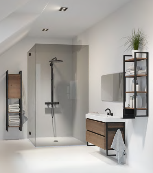 Разные размеры элементов обеспечивают больше возможностей для моделирования пространства по желанию пользователя. Юкей можно закрепить винтами к стене или установить на полу. Модули различных высот могут объединяться друг с другом. Стильный черный цвет профиля в сочетании с деревянными полками удивительно привлекателен. Полки не входят в комплект системы, поэтому их дизайн зависит только от вашей фантазии.